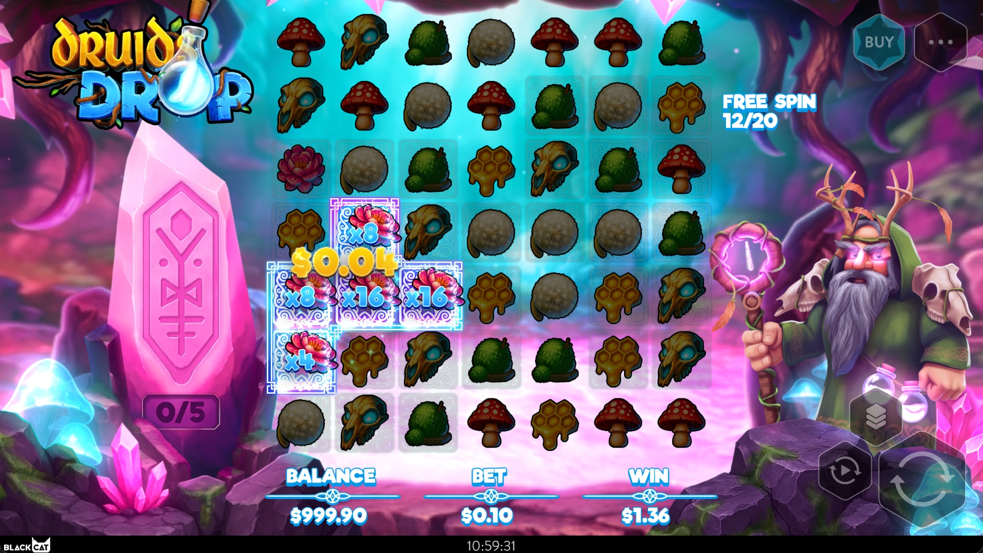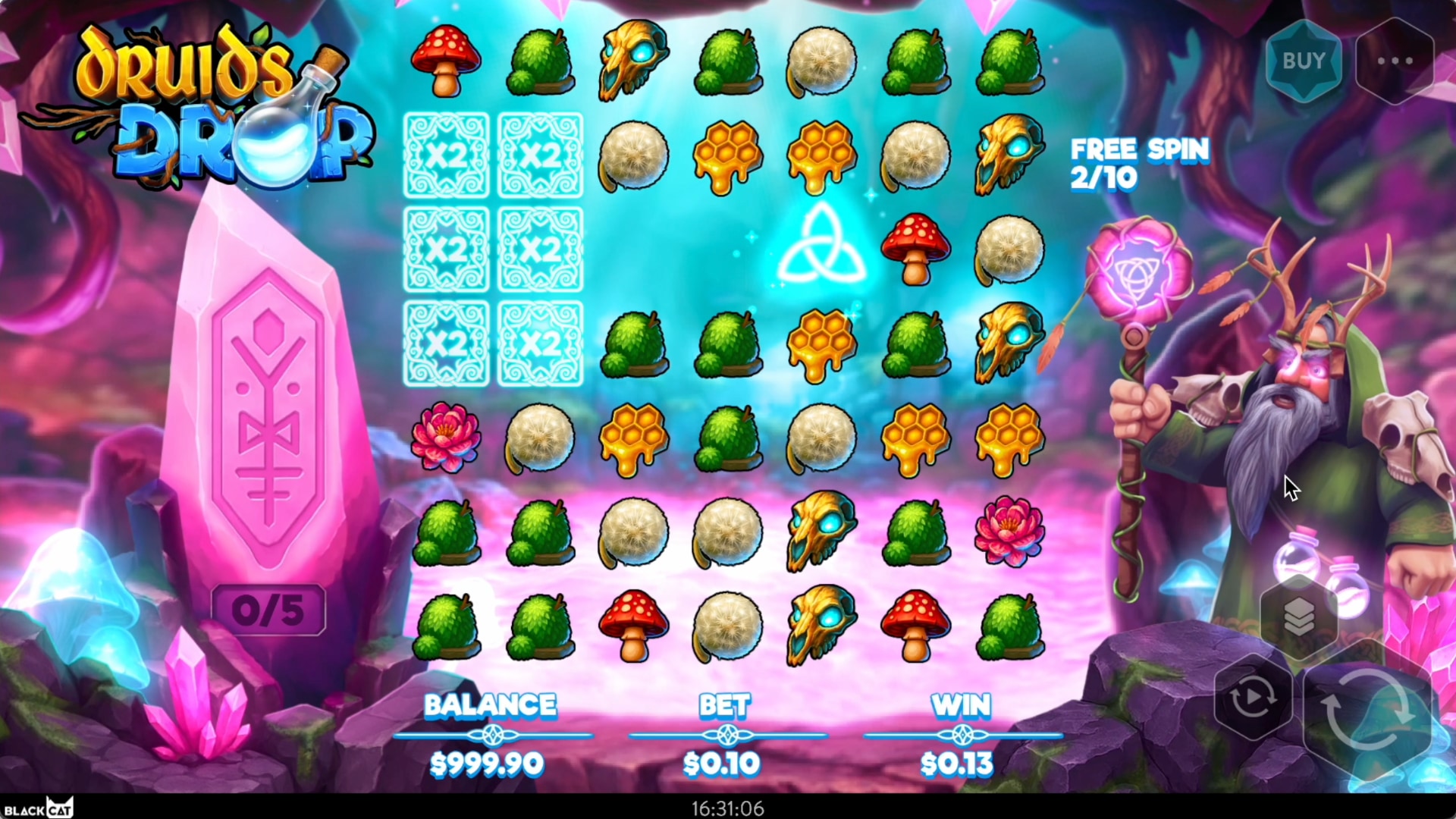 The old Druid beckons you into his sacred grove for a spellbinding 7x7 cluster-pays adventure. Connect 5 or more ingredients to trigger explosive cascades and cluster wins. When the bubbling Potion Wild explodes, it scorches the grid and leaves behind rising tile multipliers!